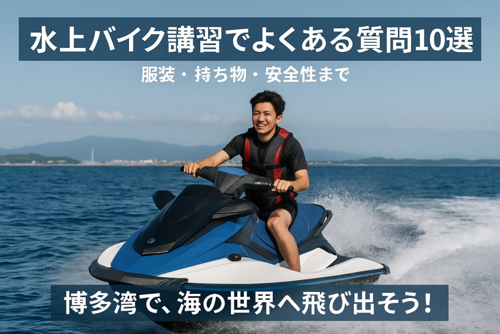夏の訪れとともに人気が高まるマリンスポーツ。その中でも特に注目されているのが「水上バイク」です。博多湾の上を爽快に走り抜ける体験は、まさに非日常。とはいえ、初めての方にとっては「講習って大変そう」「何を準備すればいいの?」と不安もつきものです。