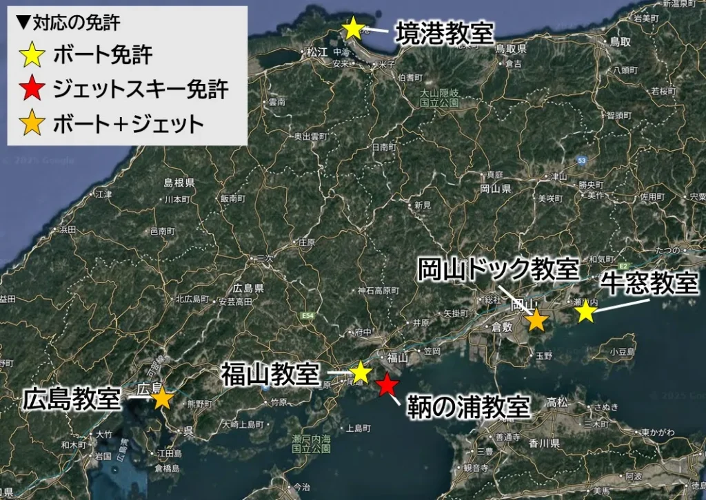 マリンライセンスロイヤル広島が中国エリアで船舶免許教習を開催している会場をご紹介。【広島・岡山・鳥取】の各教室をご紹介いたします。