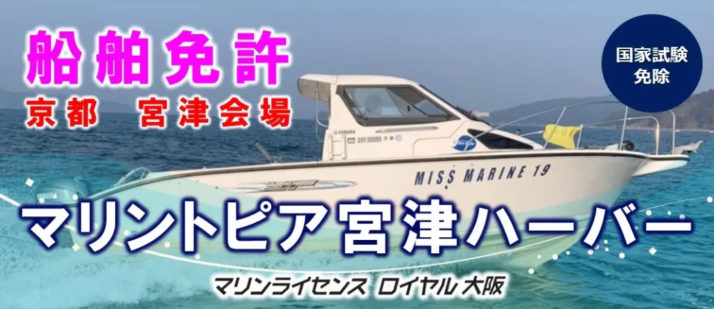 マリンライセンスロイヤル大阪は、京都府宮津市にあるマリントピア宮津ハーバー様と提携し、小型船舶免許の教習を定期的に行っております。