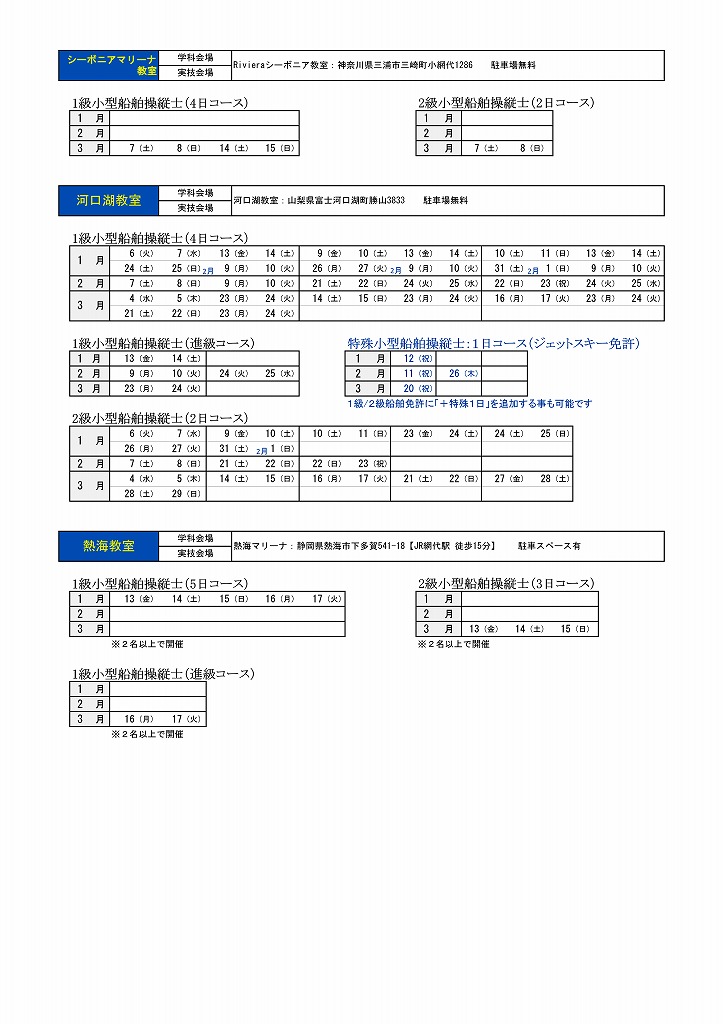 | ジェットスキー免許(2026・1月~3月)日程 |