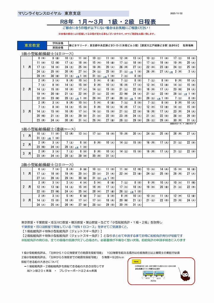 | 船舶免許・更新/失効再交付講習(2026・1月~3月)日程 |