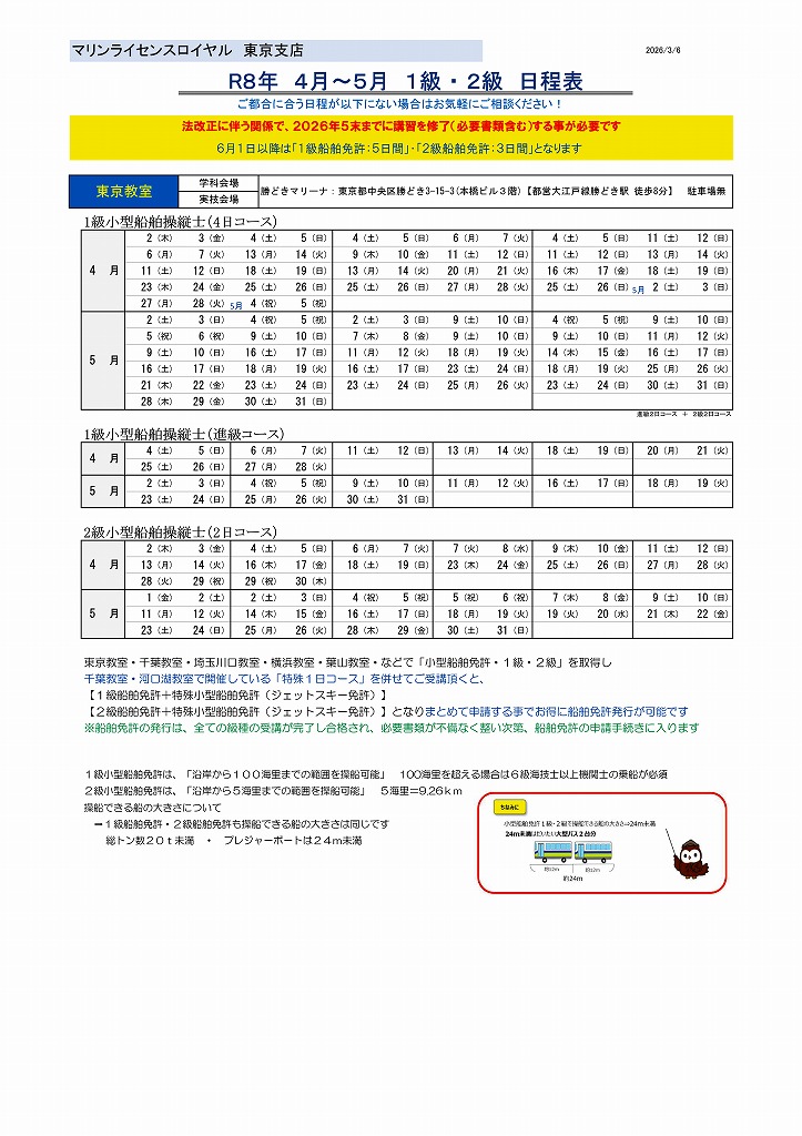 | 船舶免許(2026・4月~5月)日程 |