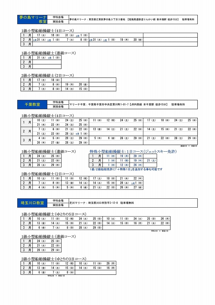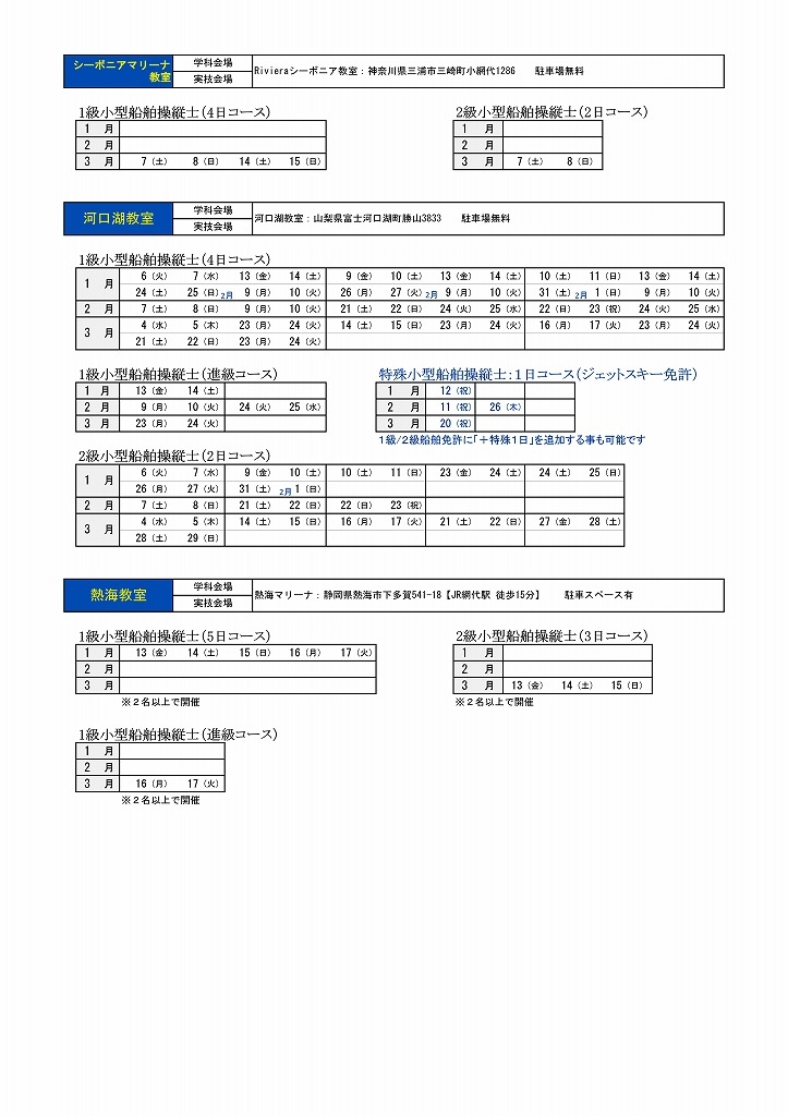 | ジェットスキー免許(2026・1月~3月)日程 |