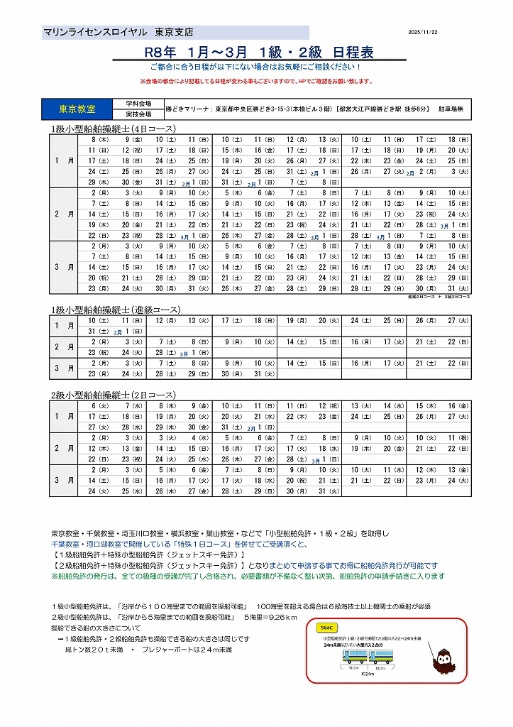 | ジェットスキー免許(2025・10月~12月)日程 |