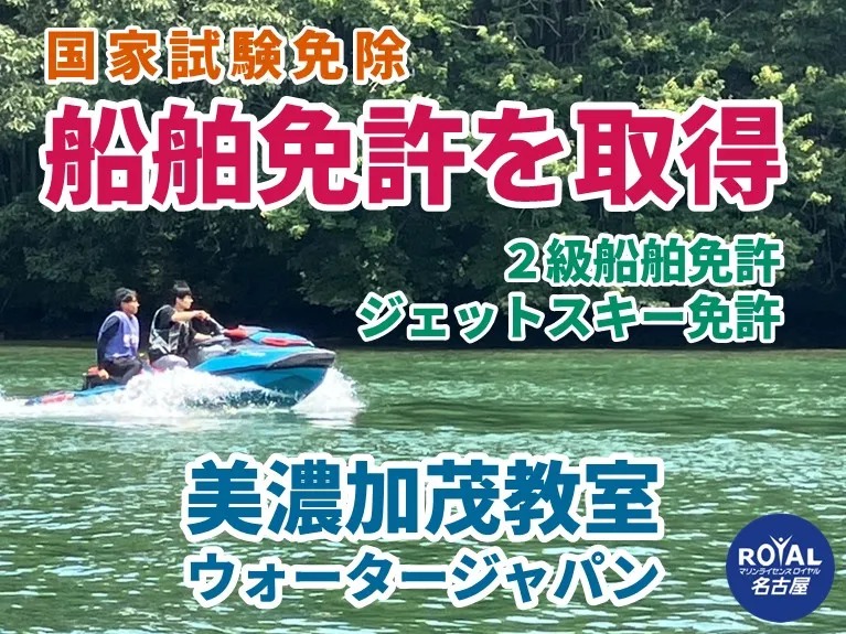 愛知県で1級小型船舶免許、2級小型船舶免許、水上バイク免許をお得に取得するなら、国家試験免除のマリンライセンスロイヤル名古屋にお任せください!