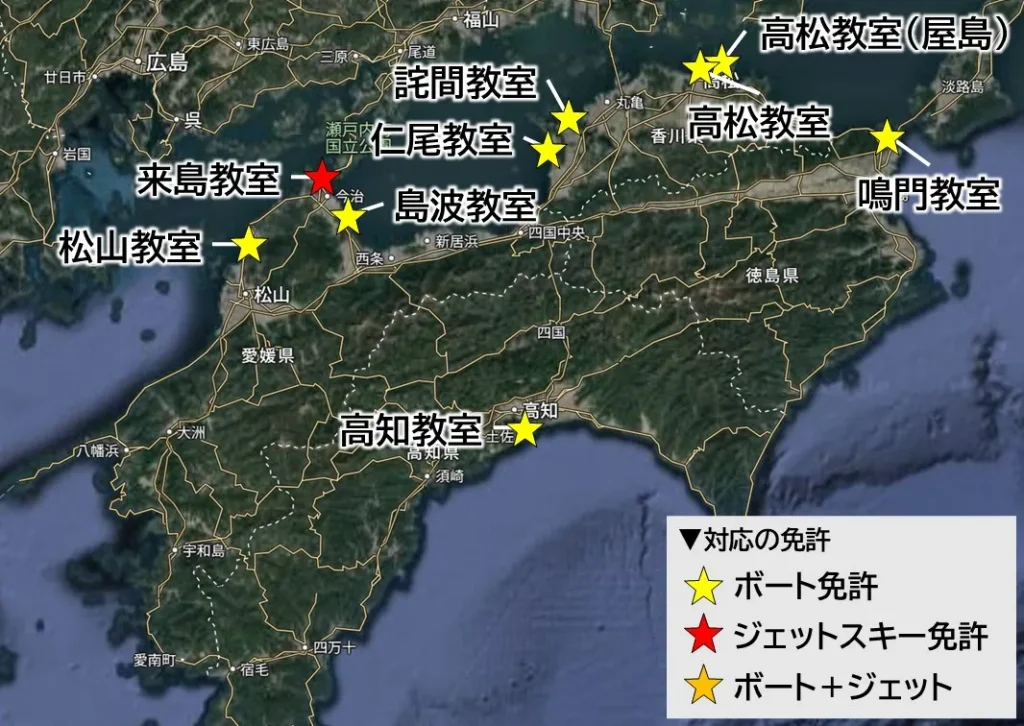 マリンライセンスロイヤル広島が四国エリアで船舶免許教習を開催している会場をご紹介。【愛媛・香川・徳島・高知】の各教室をご紹介いたします。